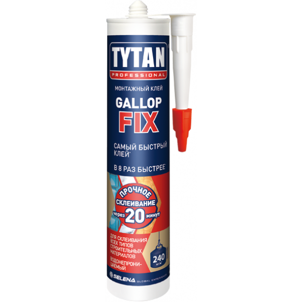 Купить TYTAN PROFESSIONAL GALLOP FIX клей монтажный, полимерный быстрого схватывания, (290мл) по лучшей цене с доставкой - интернет магазин №1 в России