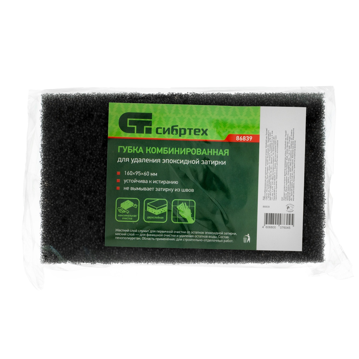 Купить Губка комбинированная для удаления эпоксидной затирки 160 х 95 х 60 мм, Сибртех V1557 по лучшей цене с доставкой - интернет магазин №1 в России