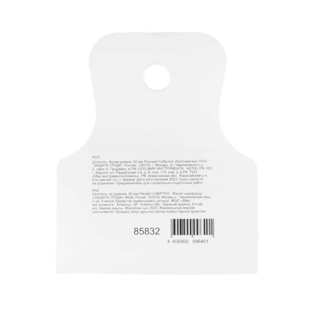 Купить Шпатель, белая резина, 60 мм Сибртех V7966 по лучшей цене с доставкой - интернет магазин №1 в России