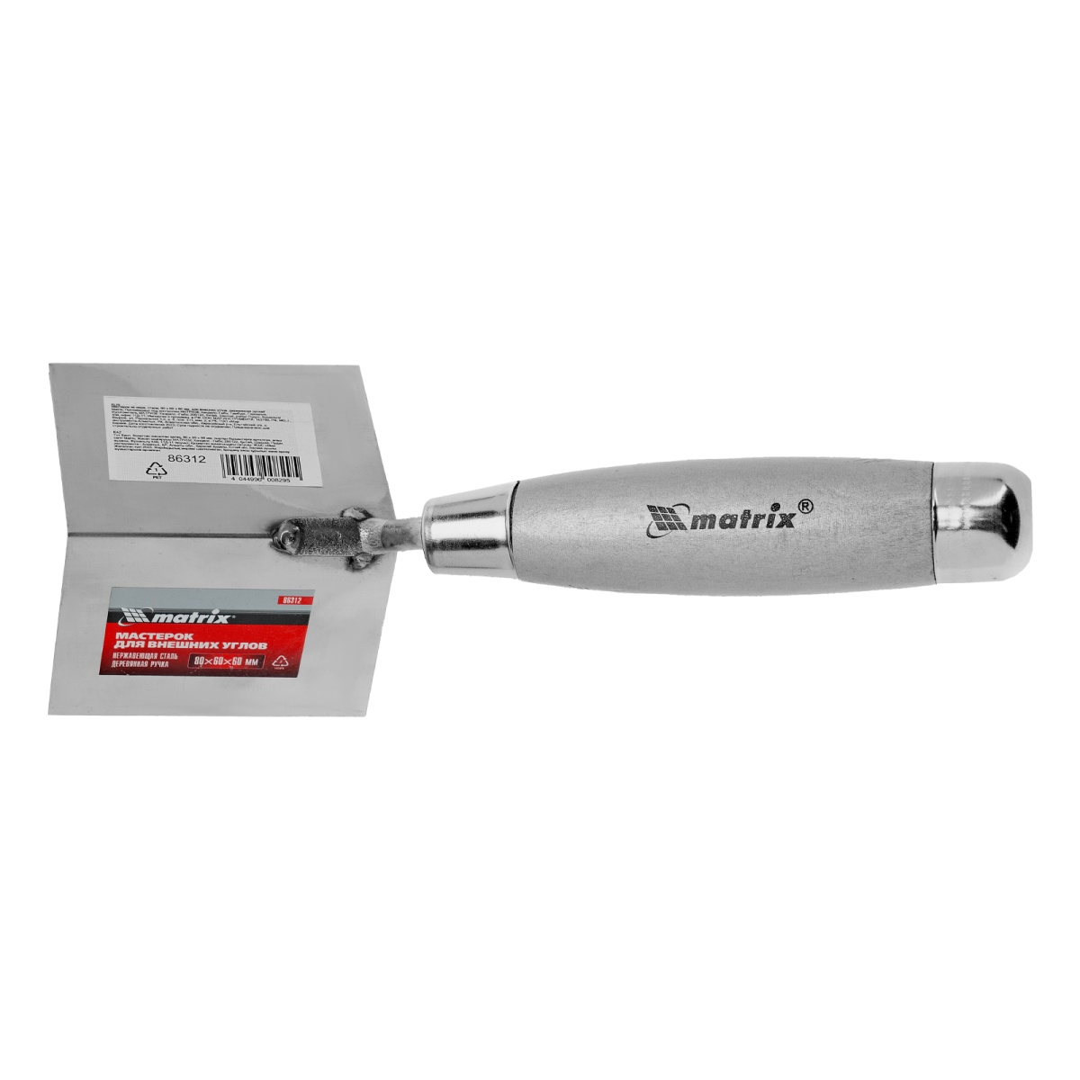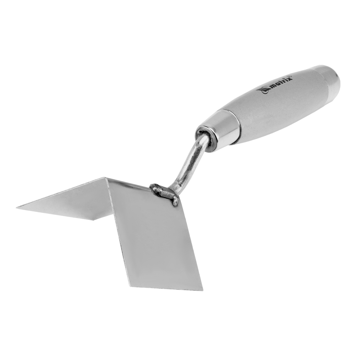 Купить Мастерок из нержавеющей стали, 80 х 60 х 60 мм, для внешних углов, деревянная ручка Matrix V3831 по лучшей цене с доставкой - интернет магазин №1 в России