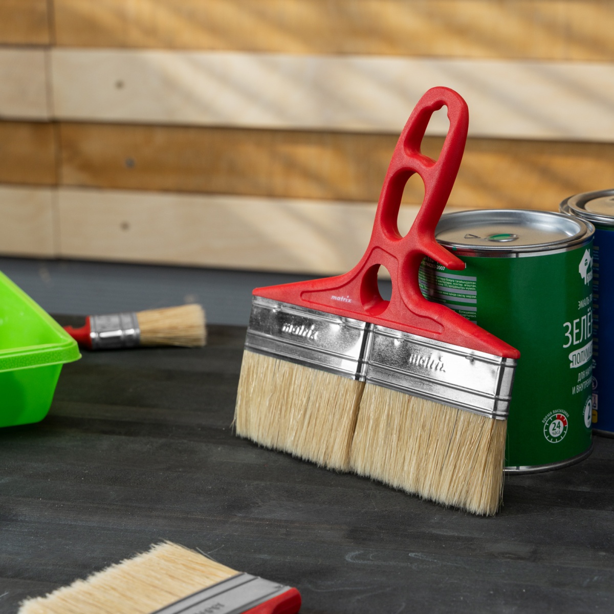 Наличие клапана для сброса давления Кисть флейцевая для лаков, 200 x 12, натуральная щетина, пластиковая ручка Color line Matrix