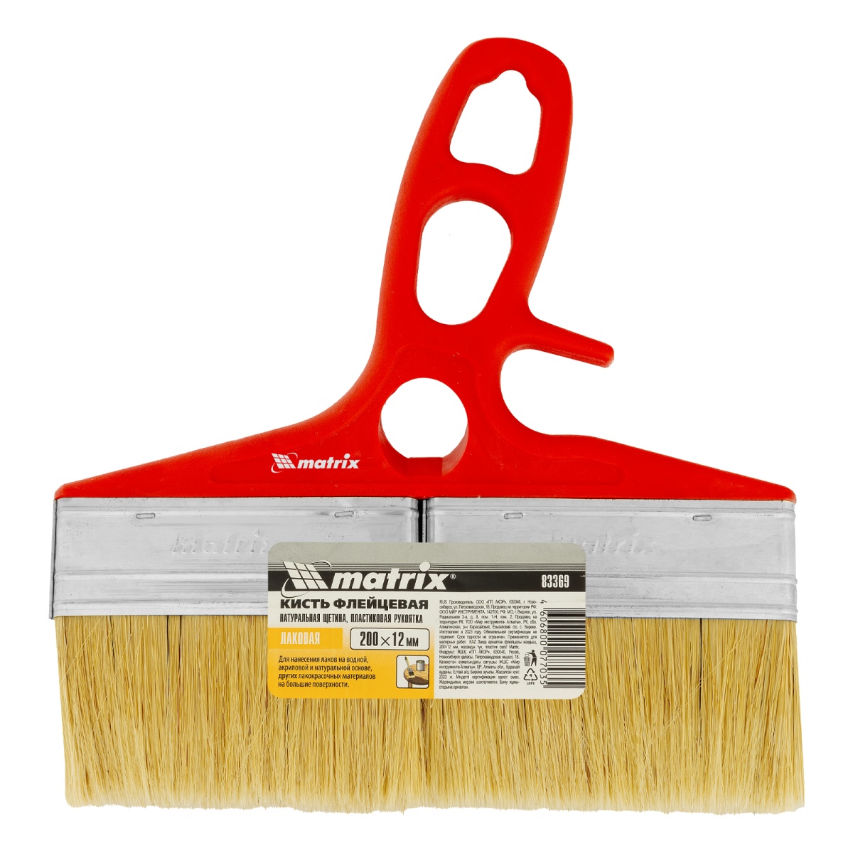 Кисть флейцевая для лаков, 200 x 12, натуральная щетина, пластиковая ручка Color line Matrix
