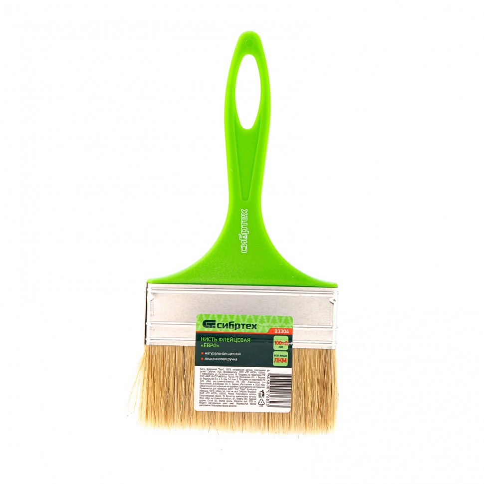 Купить Кисть флейцевая "Евро", 100 x 8, натуральная щетина, пластиковая ручка Сибртех V2135 по лучшей цене с доставкой - интернет магазин №1 в России