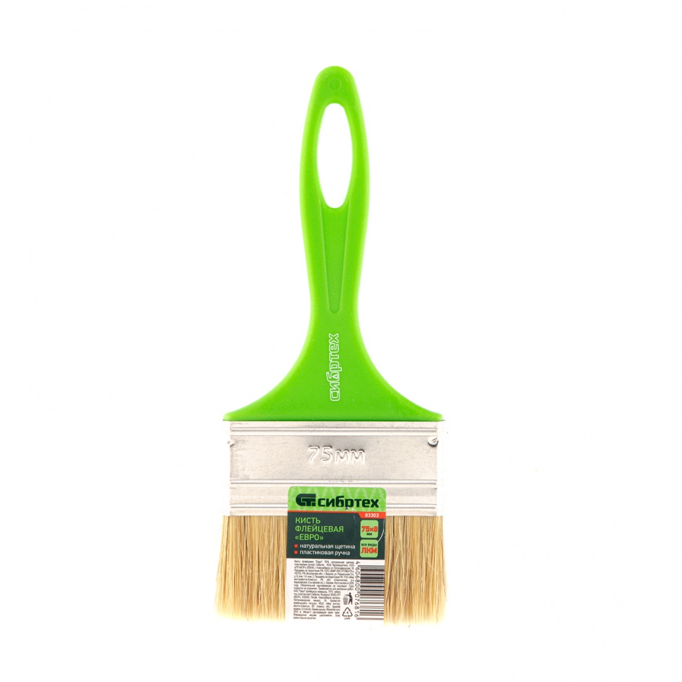 Купить Кисть флейцевая "Евро", 75 x 8, натуральная щетина, пластиковая ручка Сибртех V2138 по лучшей цене с доставкой - интернет магазин №1 в России