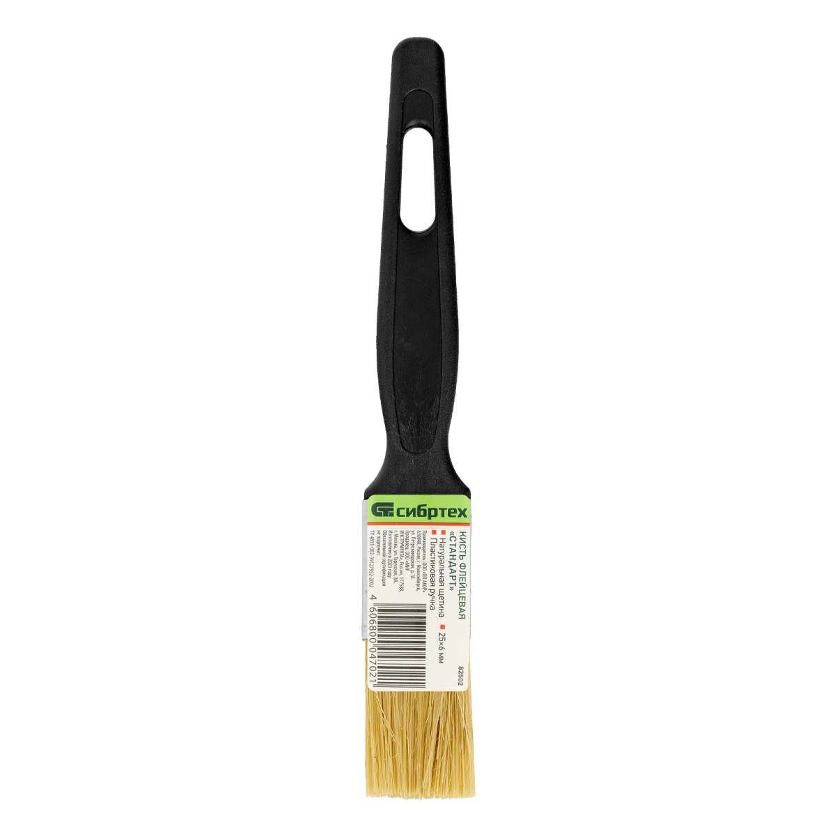 Кисть флейцевая "Стандарт", 25 х 6 мм, натуральная щетина, пластиковая ручка Сибртех