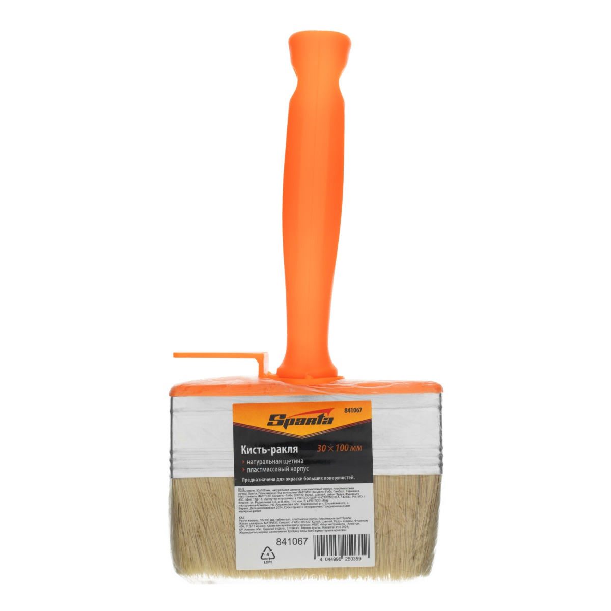 Кисть-ракля, 30х100 мм, натуральная щетина, пластмассовый корпус, пластмассовая ручка Sparta