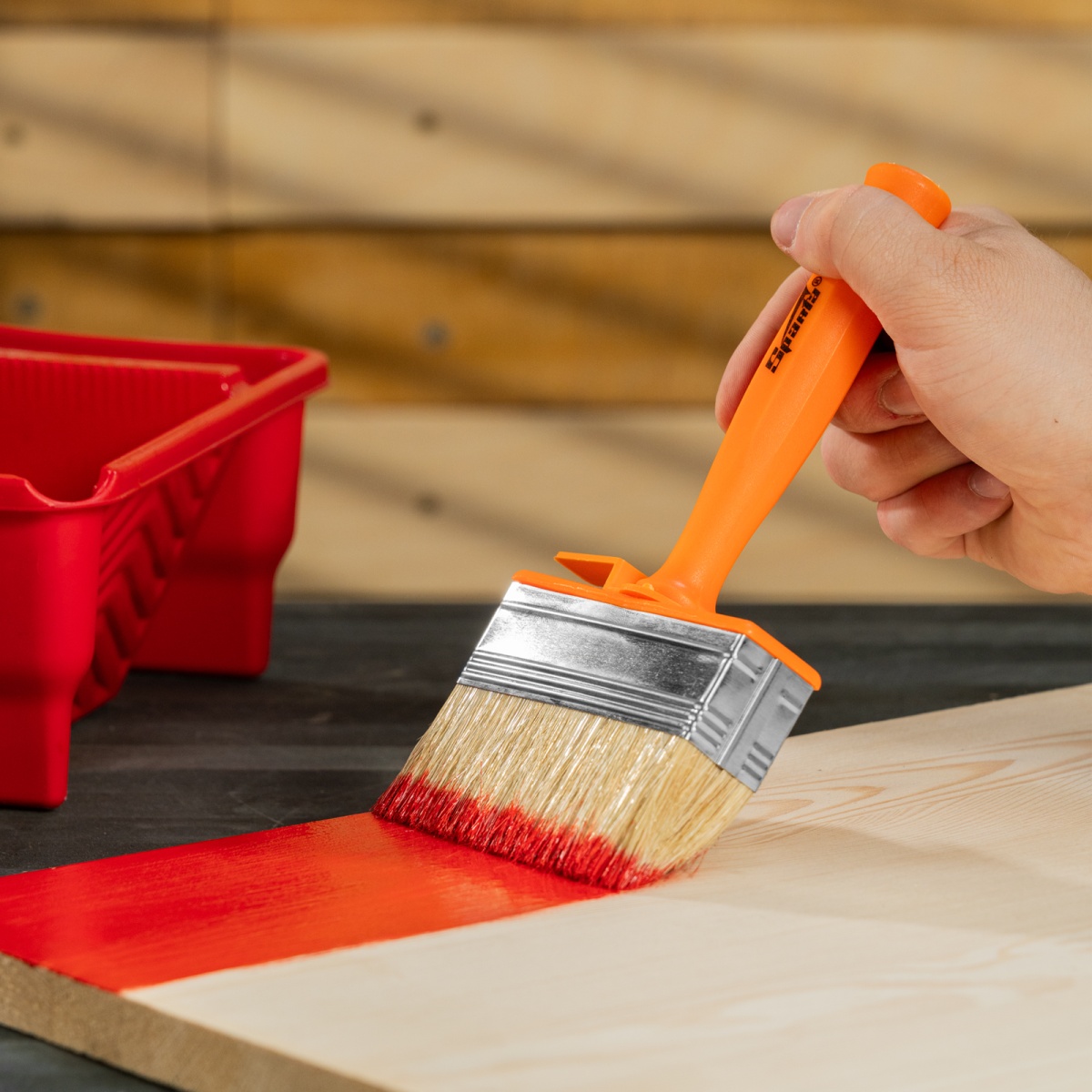 Купить Кисть-ракля, 30х100 мм, натуральная щетина, пластмассовый корпус, пластмассовая ручка Sparta V2165 по лучшей цене с доставкой - интернет магазин №1 в России