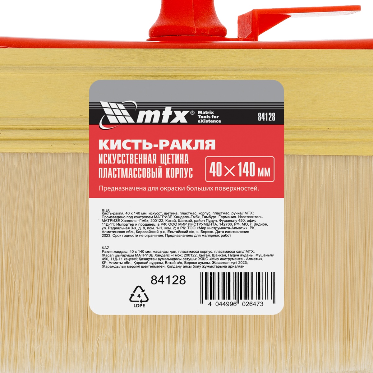 Кисть-ракля, 40 х 140 мм, искусственная щетина, пластмассовый корпус, пластмассовая ручка MTX