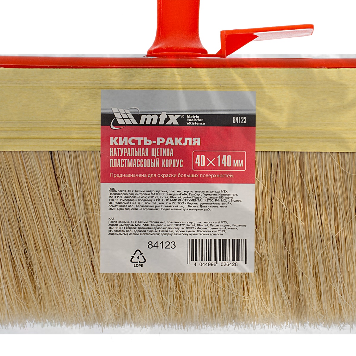 Кисть-ракля, 40 х 140 мм, натуральная щетина, пластмассовый корпус, пластмас. ручка MTX