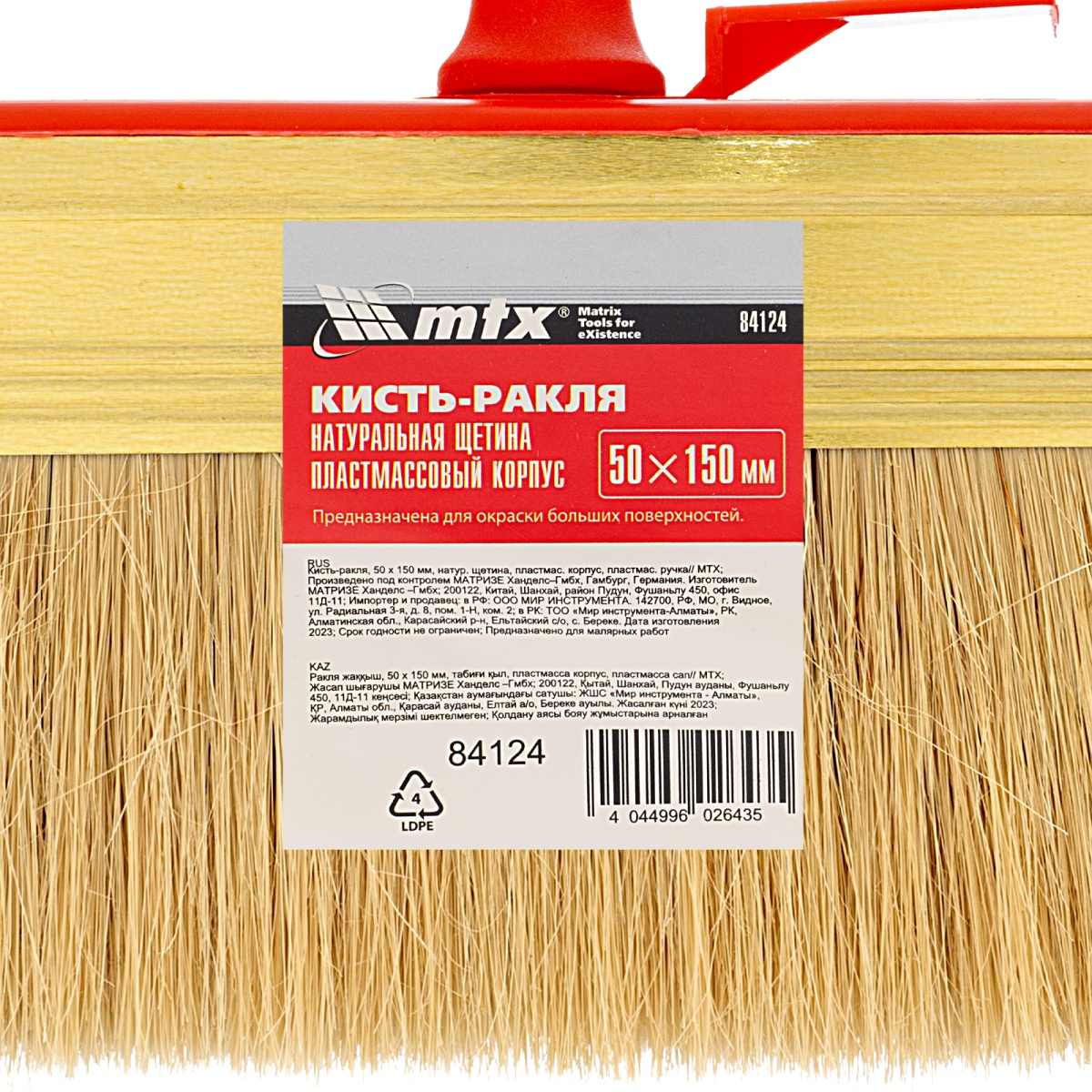 Купить Кисть-ракля, 50 х 150 мм, натуральная щетина, пластмассовый корпус, пластмассовая ручка MTX V2171 по лучшей цене с доставкой - интернет магазин №1 в России