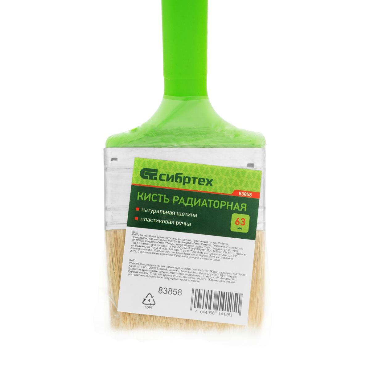 Купить Кисть радиаторная 63 мм, натуральная щетина, пластиковая ручка Сибртех V2128 по лучшей цене с доставкой - интернет магазин №1 в России