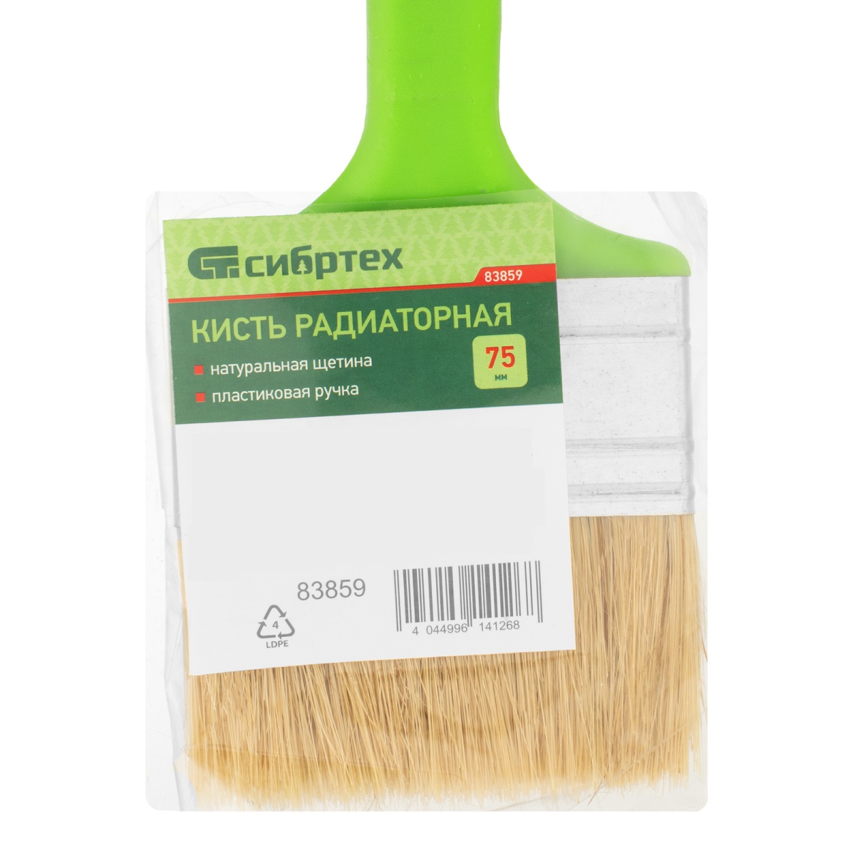 Кисть радиаторная 75 мм, натуральная щетина, пластиковая ручка Сибртех