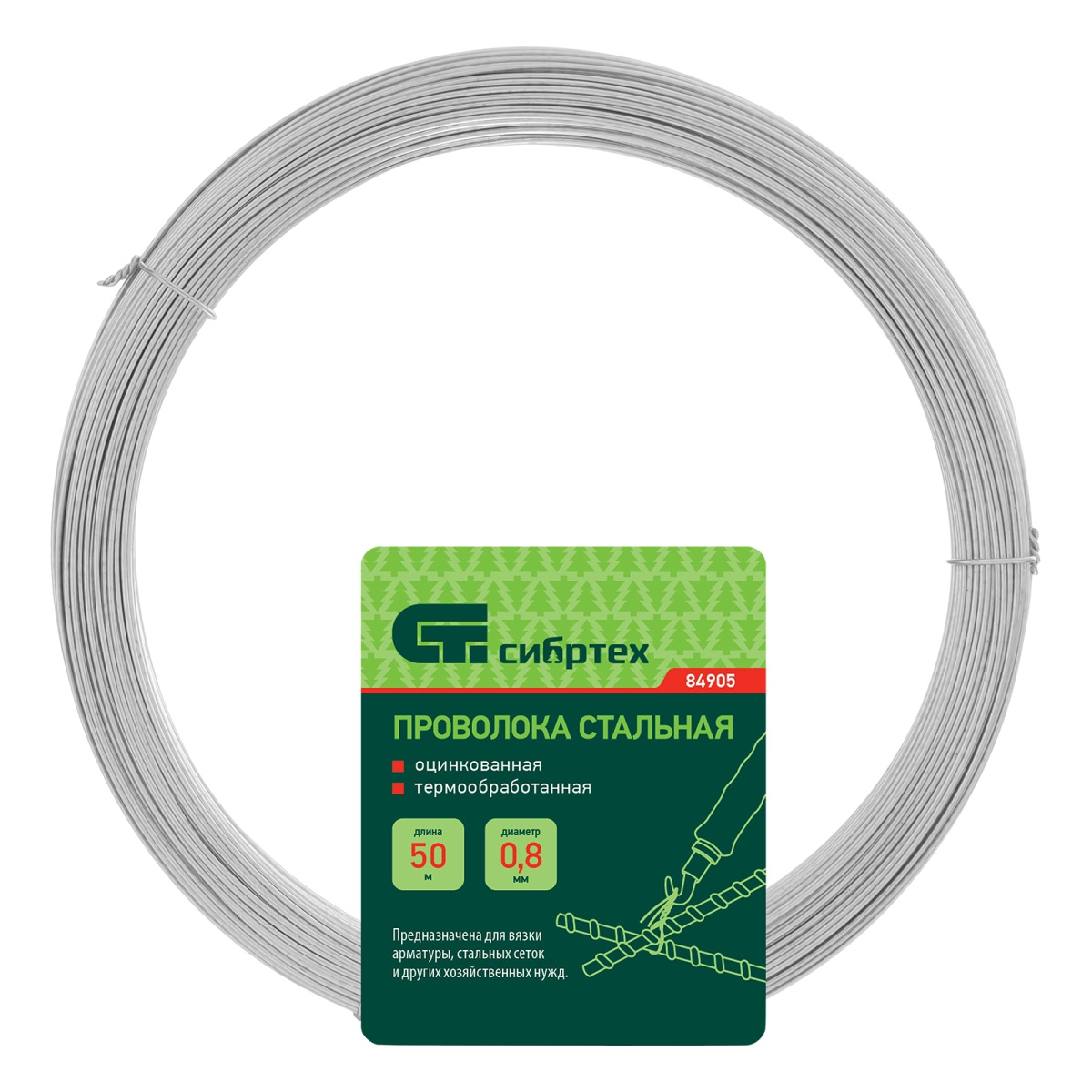 Купить Проволока стальная 50 м, оцинкованная, термообработанная 0.8 мм Сибртех V5873 по лучшей цене с доставкой - интернет магазин №1 в России
