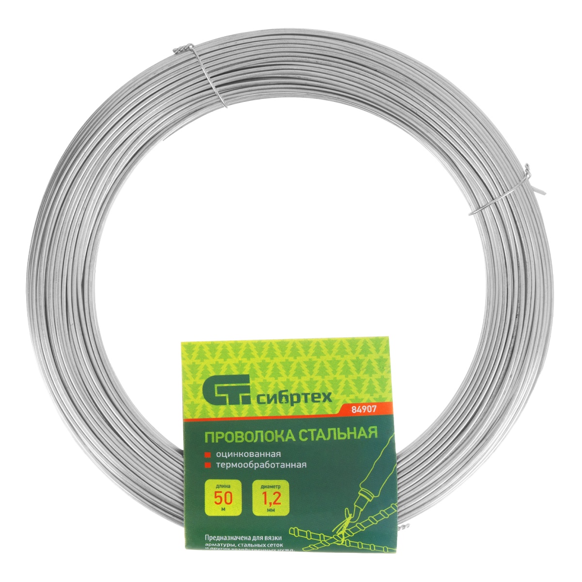 Купить Проволока стальная 50 м, оцинкованная, термообработанная 1.2 мм Сибртех V5875 по лучшей цене с доставкой - интернет магазин №1 в России