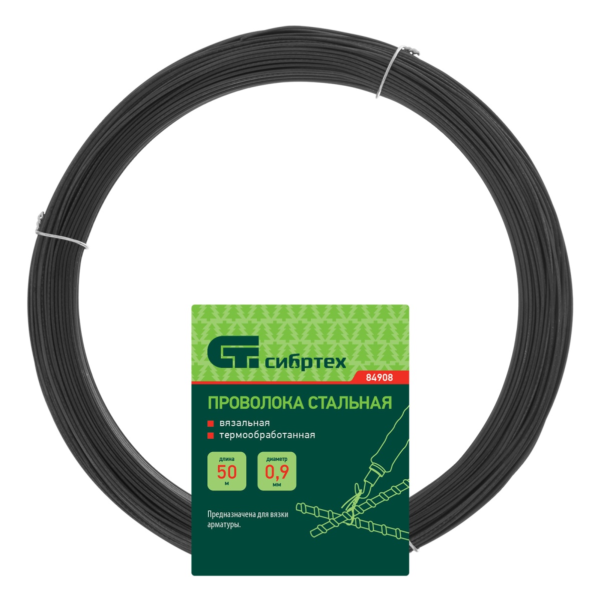 Купить Проволока стальная 50 м, вязальная, термообработанная 0.9 мм Сибртех V5872 по лучшей цене с доставкой - интернет магазин №1 в России