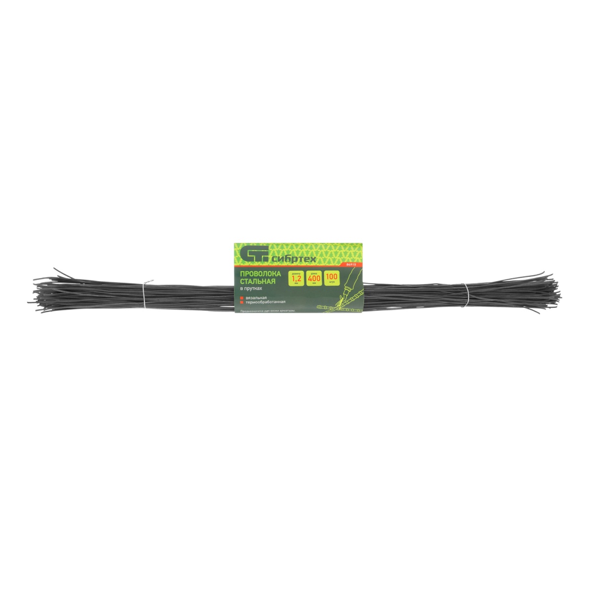 Проволока стальная в прутках 400 мм х 100 шт, вязальная, термообработанная 1.2 мм Сибртех