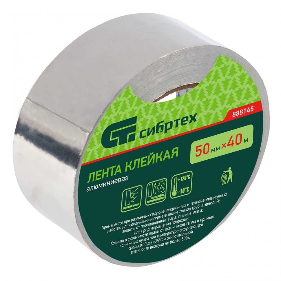 Купить Лента клейкая алюминиевая, 50 мм х 40 м Сибртех V3449 по лучшей цене с доставкой - интернет магазин №1 в России