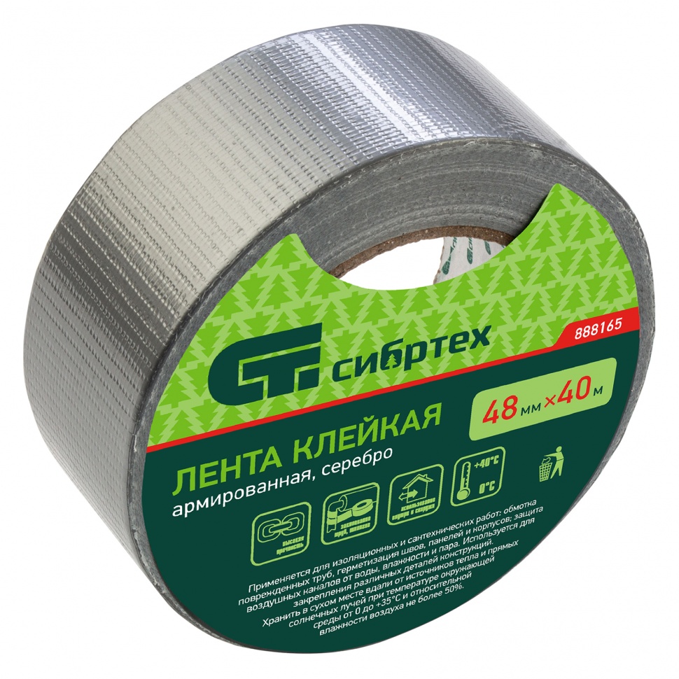 Купить Лента клейкая армированная, 48 мм х 40 м, серебро Сибртех V3451 по лучшей цене с доставкой - интернет магазин №1 в России