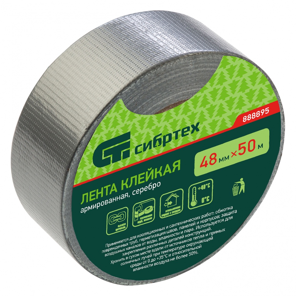 Купить Лента клейкая армированная, 48 мм х 50 м, серебро Сибртех V3452 по лучшей цене с доставкой - интернет магазин №1 в России