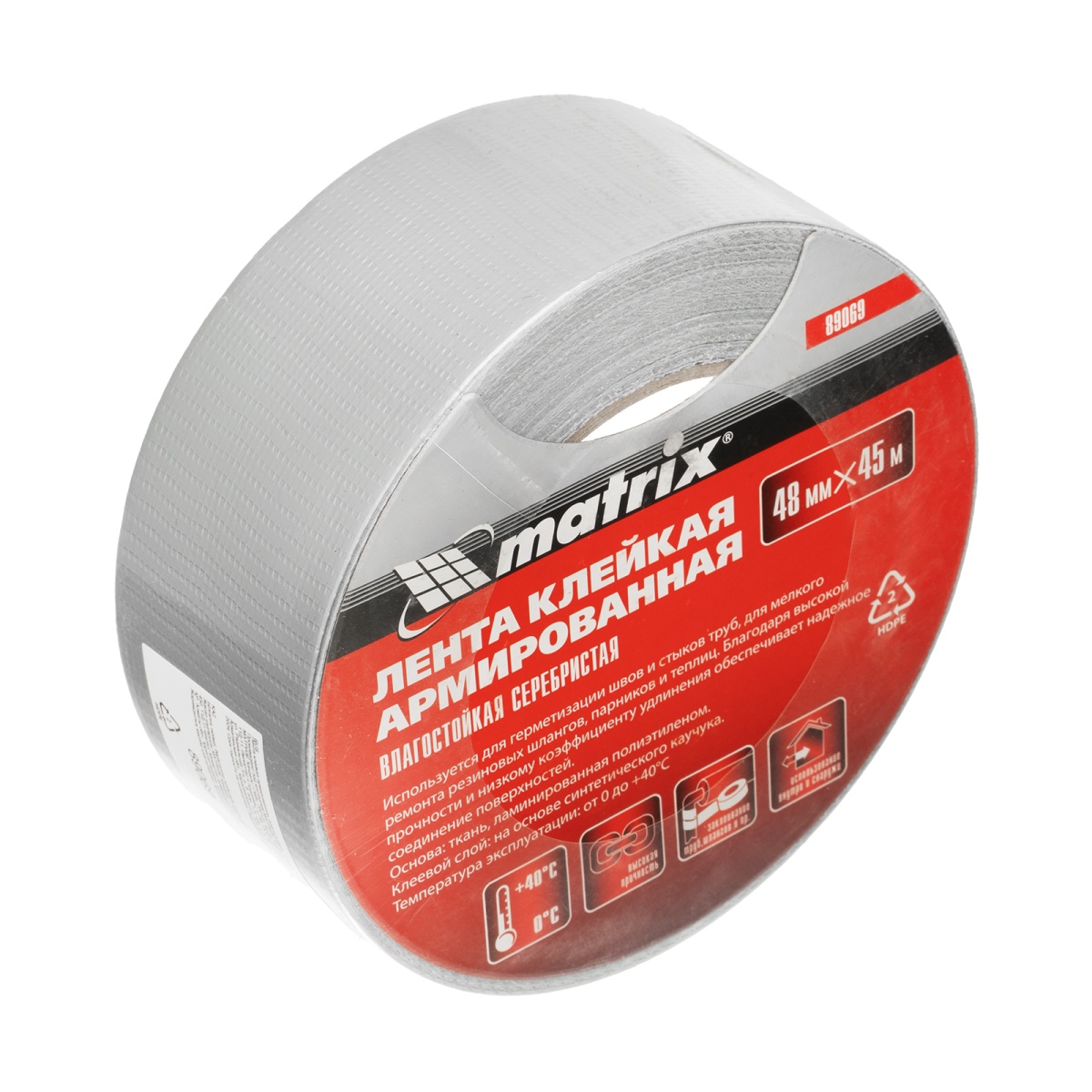 Купить Лента клейкая армированная, влагостойкая, 48 мм х 45 м, серебристая Matrix V3454 по лучшей цене с доставкой - интернет магазин №1 в России