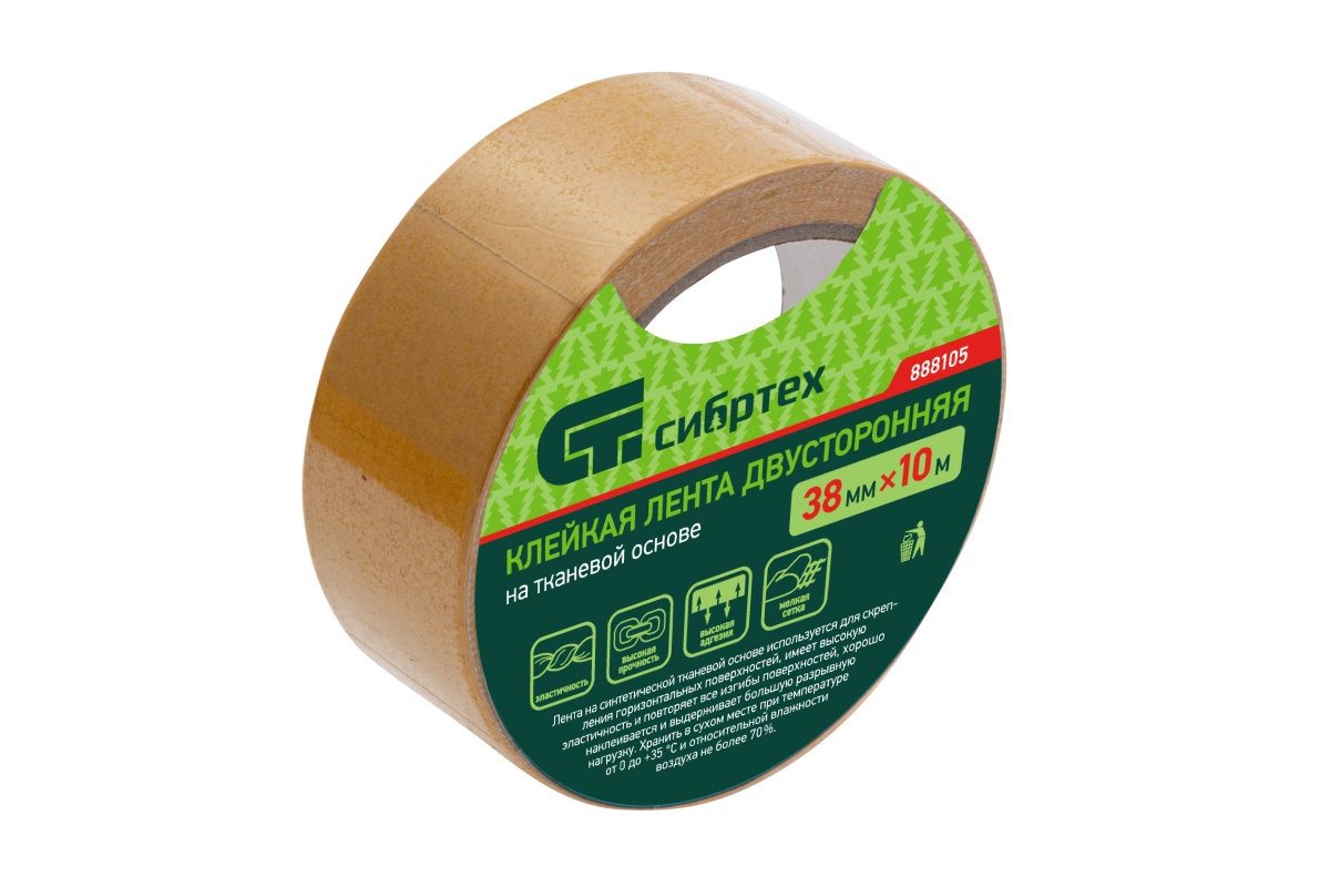 Купить Лента клейкая двусторонняя, 38 мм х 10 м, на тканевой основе Сибртех V3456 по лучшей цене с доставкой - интернет магазин №1 в России