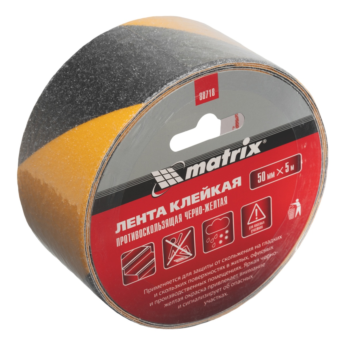 Купить Лента клейкая противоскользящая, черно-желтая 50 мм x 5 м Matrix V3475 по лучшей цене с доставкой - интернет магазин №1 в России