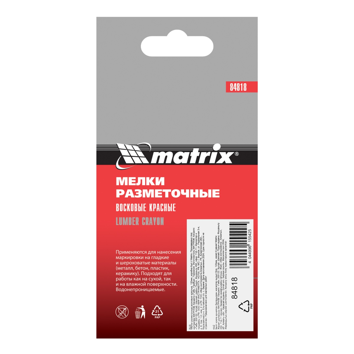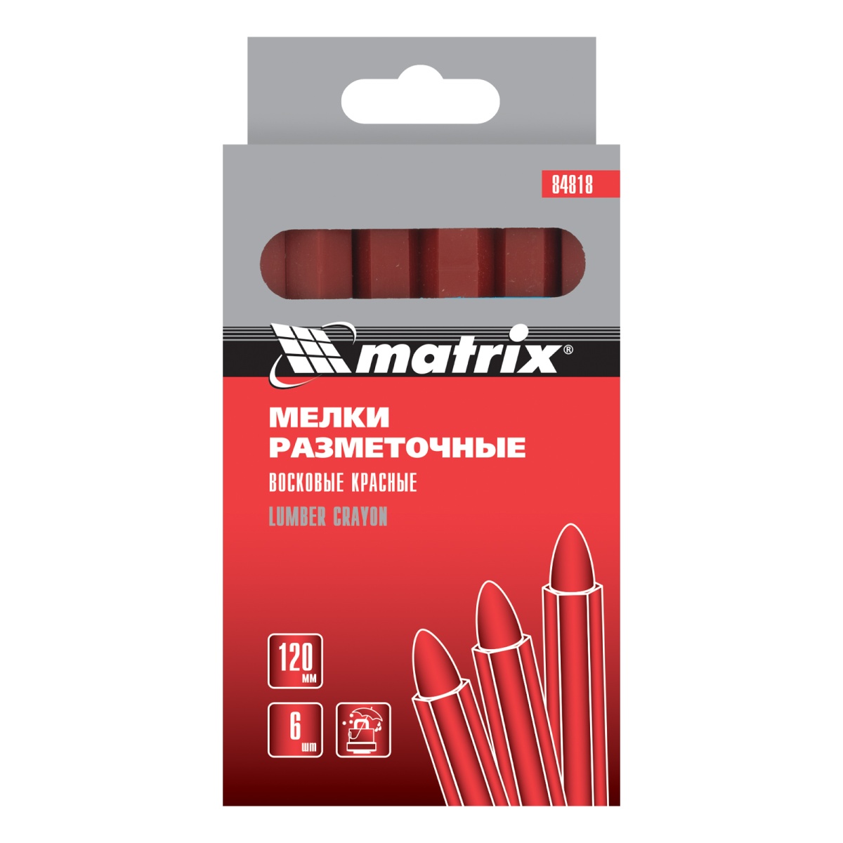 Купить Мелки разметочные восковые красные, 120 мм, коробка 6 шт Matrix V3842 по лучшей цене с доставкой - интернет магазин №1 в России