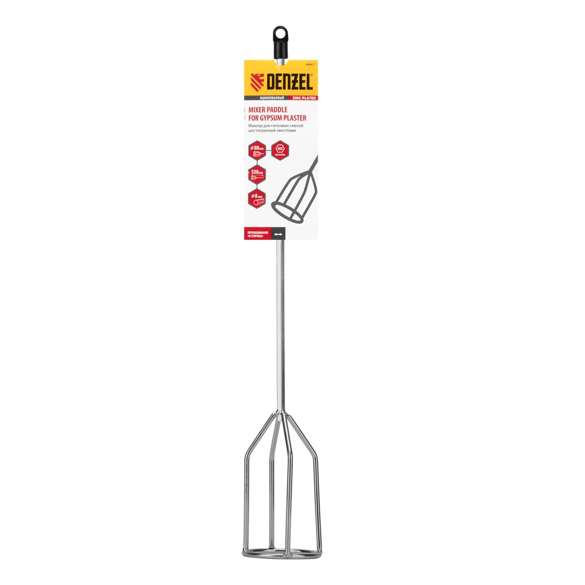 Купить Миксер для гипсовых смесей, 80 х 530 мм, оцинкованный, шестигранный хвостовик 8 мм Denzel V3903 по лучшей цене с доставкой - интернет магазин №1 в России