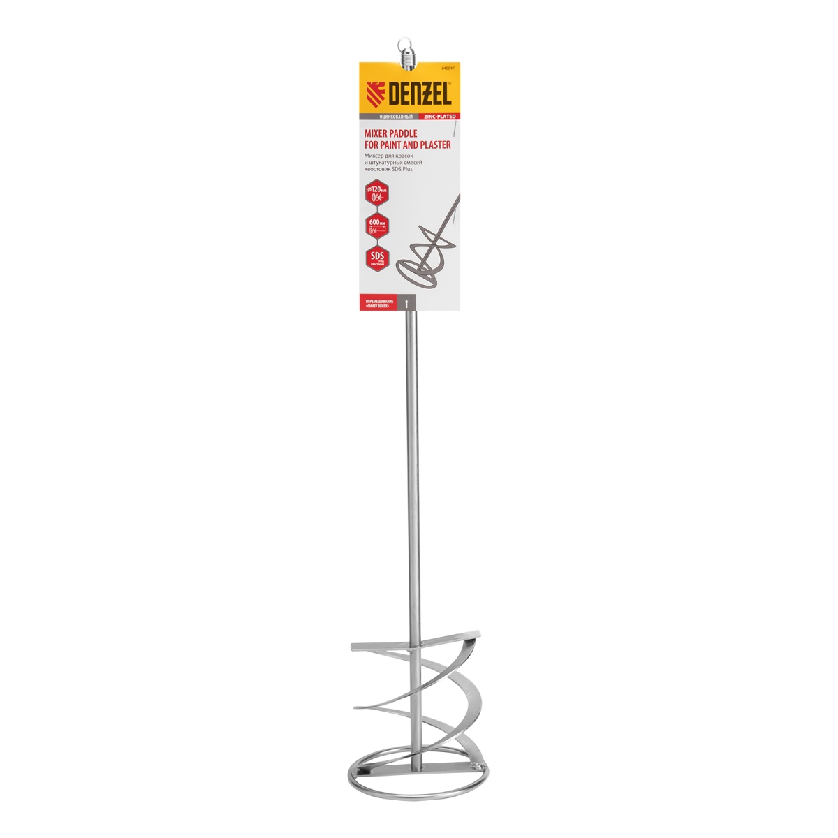 Купить Миксер для красок и штукатурных смесей, 120 х 600 мм, оцинкованный, хвостовик SDS Plus Denzel V3908 по лучшей цене с доставкой - интернет магазин №1 в России