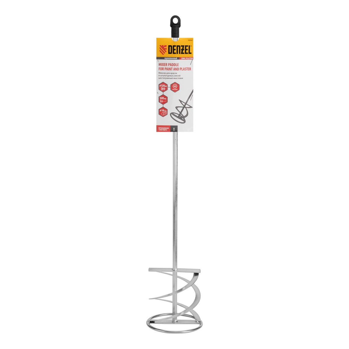 Купить Миксер для красок и штукатурных смесей, 120 х 600 мм, оцинкованный, шестигранный хвостовик 10мм Denzel V3909 по лучшей цене с доставкой - интернет магазин №1 в России