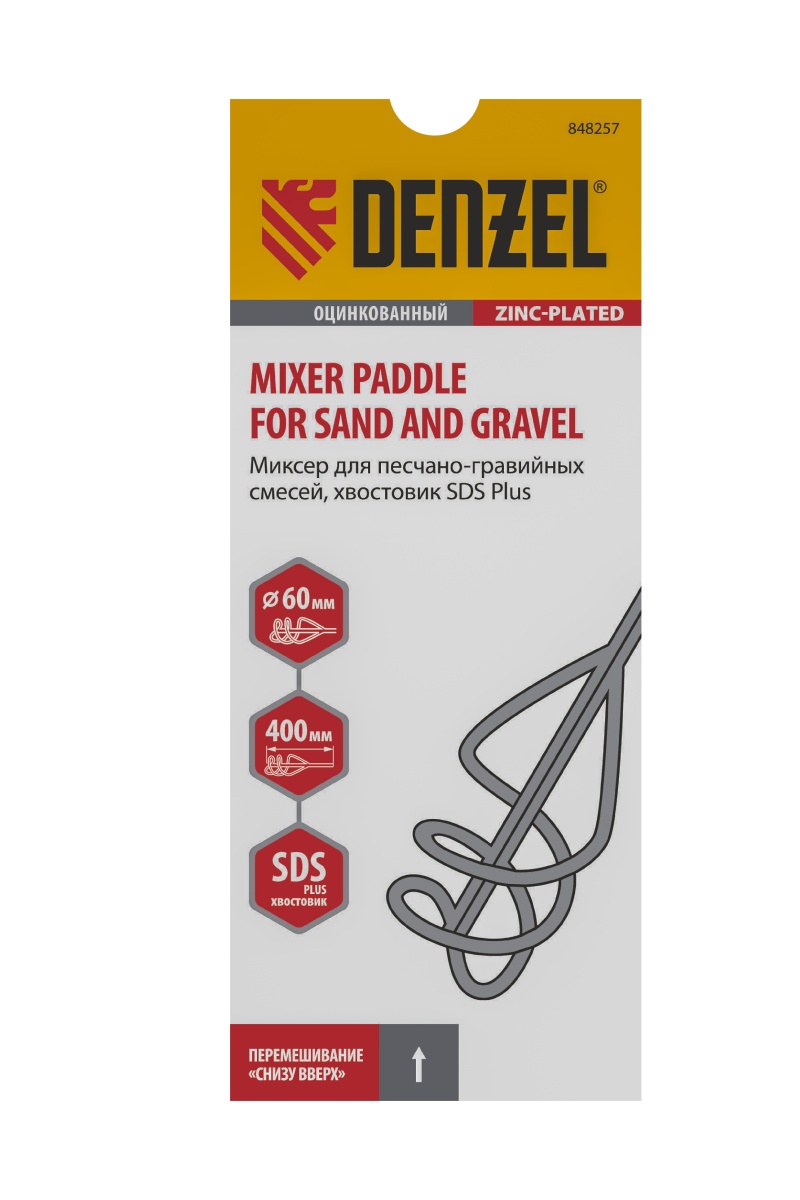 Купить Миксер для песчано-гравийных смесей, 60 х 400 мм, оцинкованный, хвостовик SDS Plus Denzel V3926 по лучшей цене с доставкой - интернет магазин №1 в России