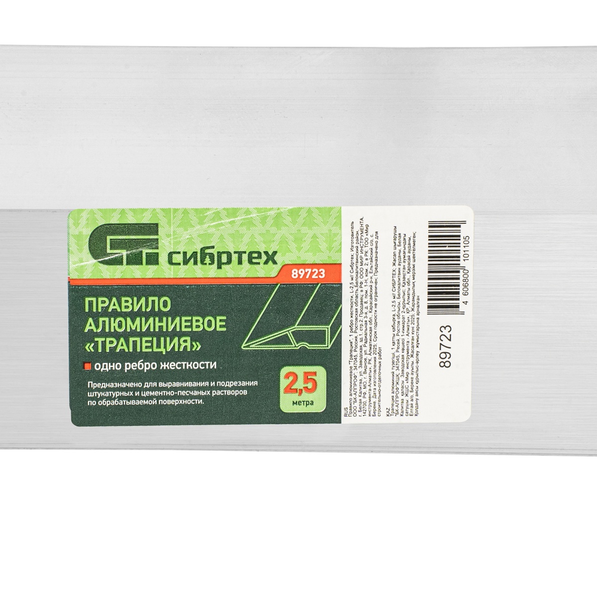 Купить Правило алюминиевое "Трапеция", 1 ребро жесткости, L-2,5 м Сибртех V5821 по лучшей цене с доставкой - интернет магазин №1 в России