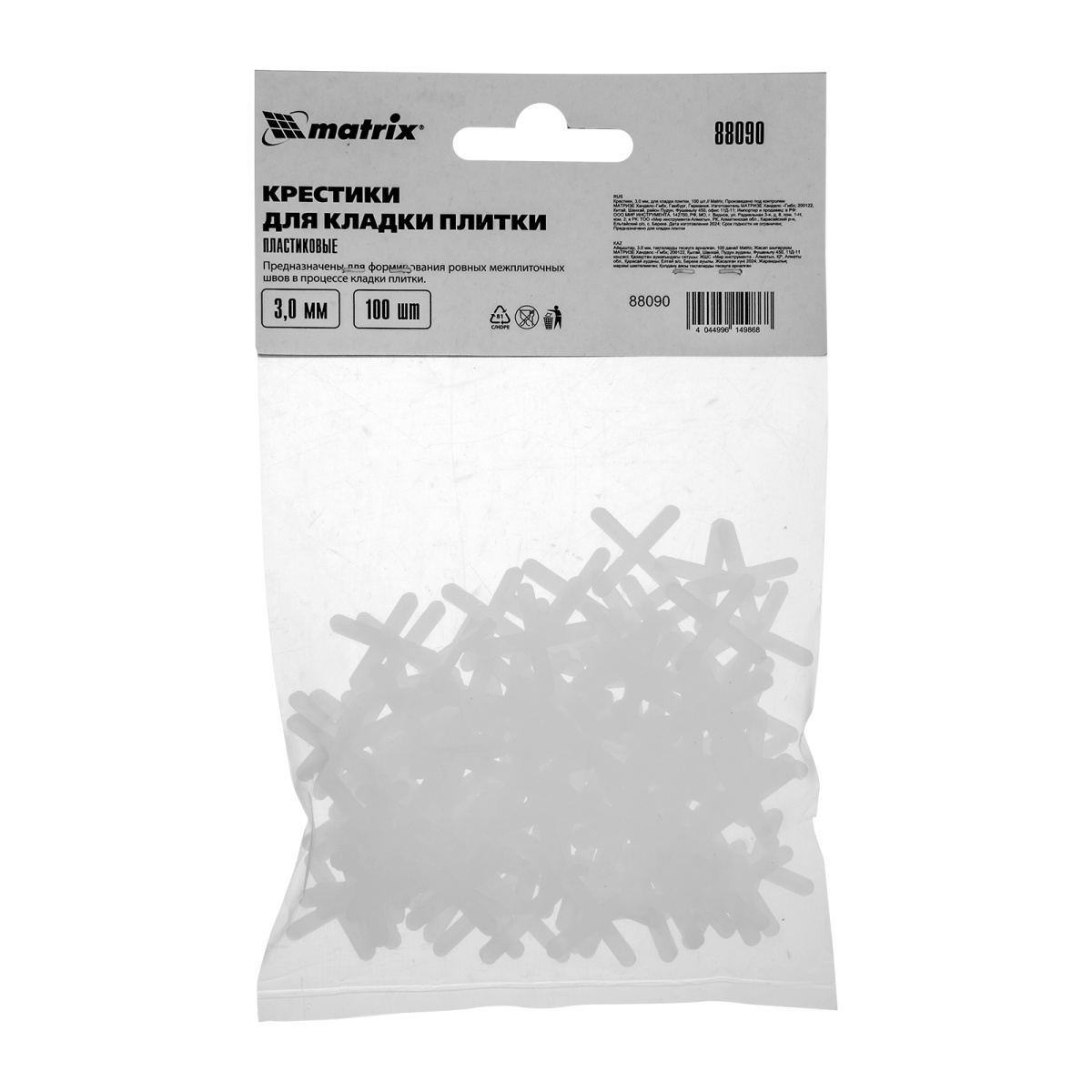Крестики, 3.0 мм, для кладки плитки, 100 шт Matrix