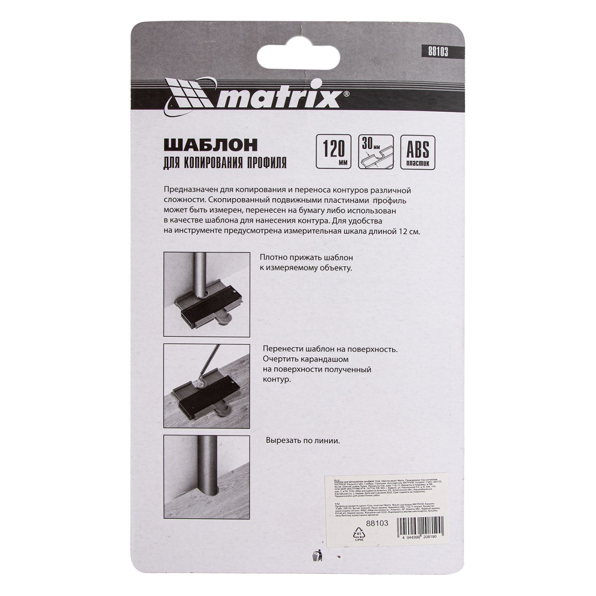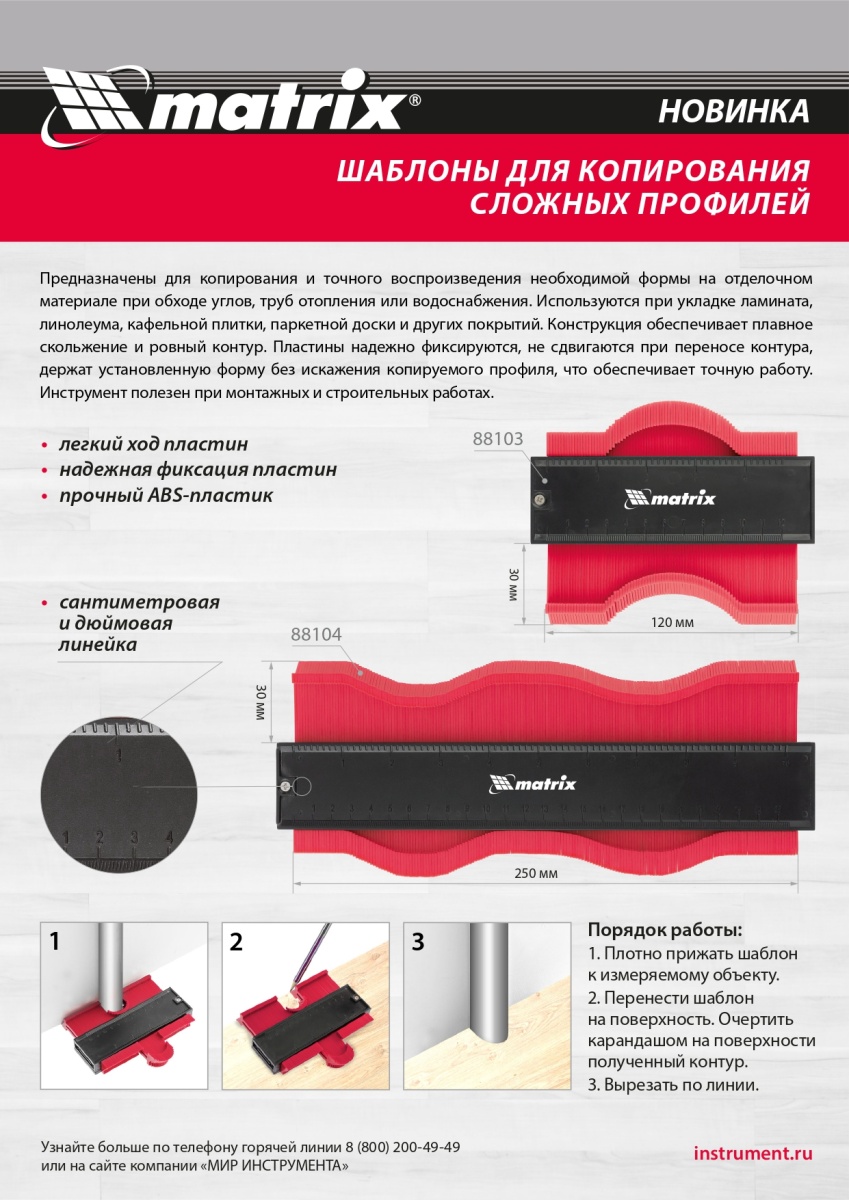 Купить Шаблон для копирования профиля 12 см, пластиковый Matrix V7603 по лучшей цене с доставкой - интернет магазин №1 в России