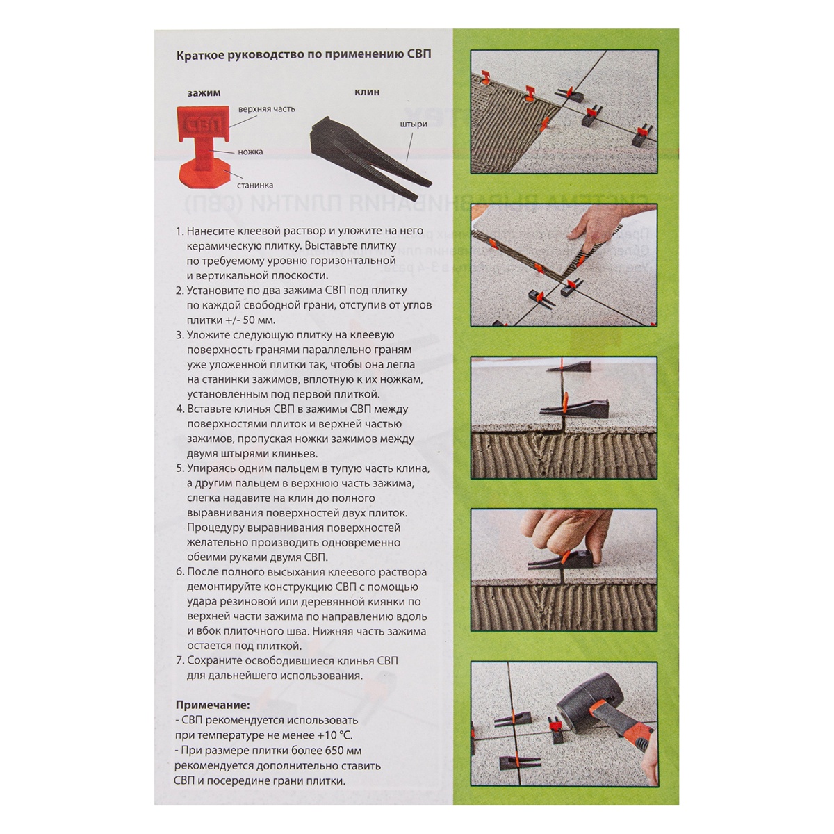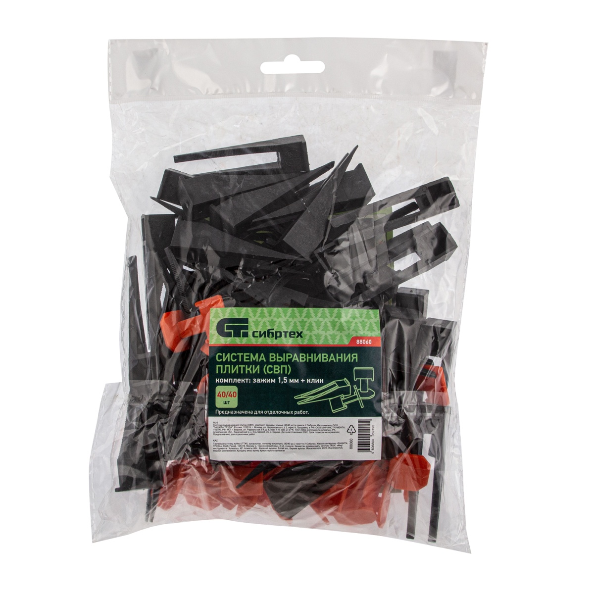 Купить Система выравнивания плитки (СВП) комплект: зажимы, клинья (40/40 шт) в пакете Сибртех V6682 по лучшей цене с доставкой - интернет магазин №1 в России