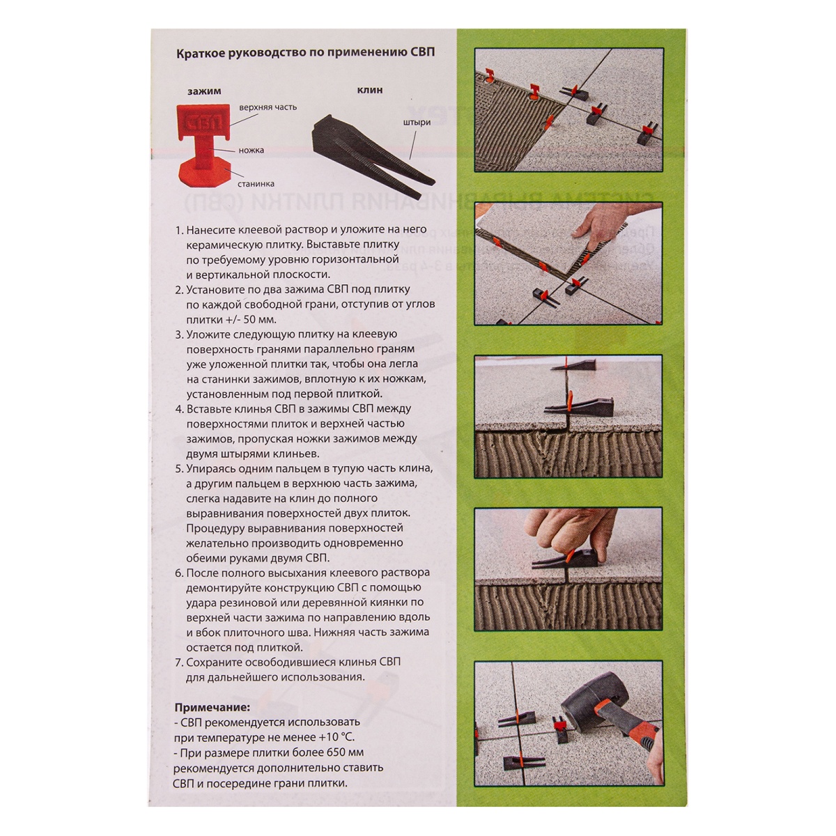 Система выравнивания плитки (СВП) комплект: зажимы, клинья (50/50 шт) упаковка ведро Сибртех
