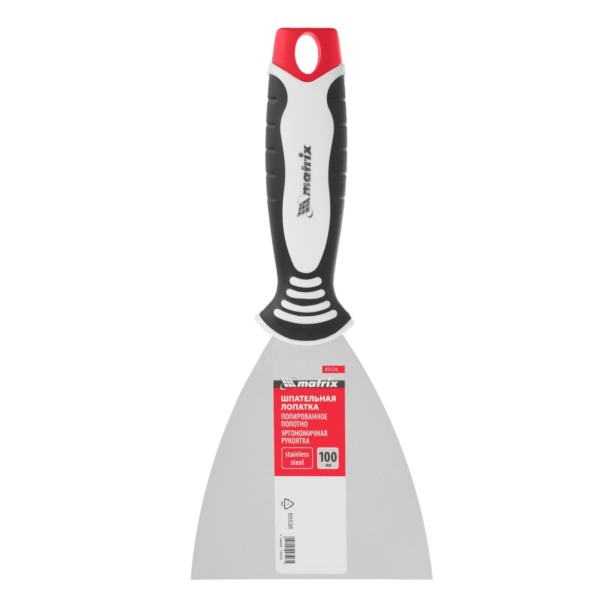 Шпательная лопатка из нержавеющей стали, 100 мм, трехкомпонентная ручка Matrix