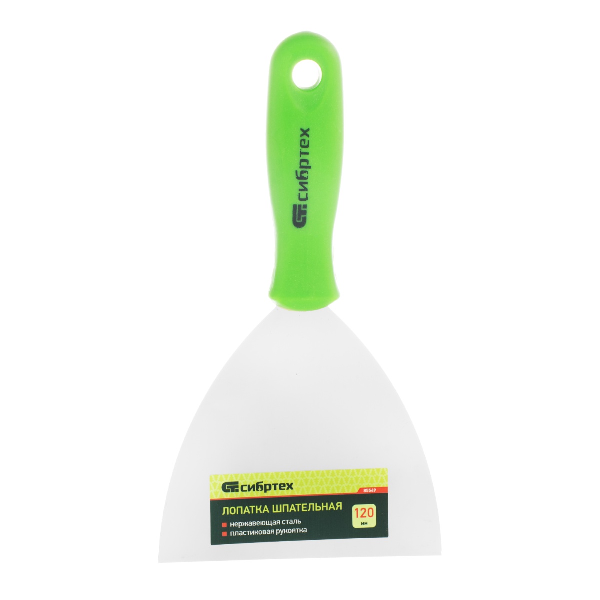 Купить Шпательная лопатка из нержавеющей стали, 120 мм, пластмассовая ручка Сибртех V7977 по лучшей цене с доставкой - интернет магазин №1 в России