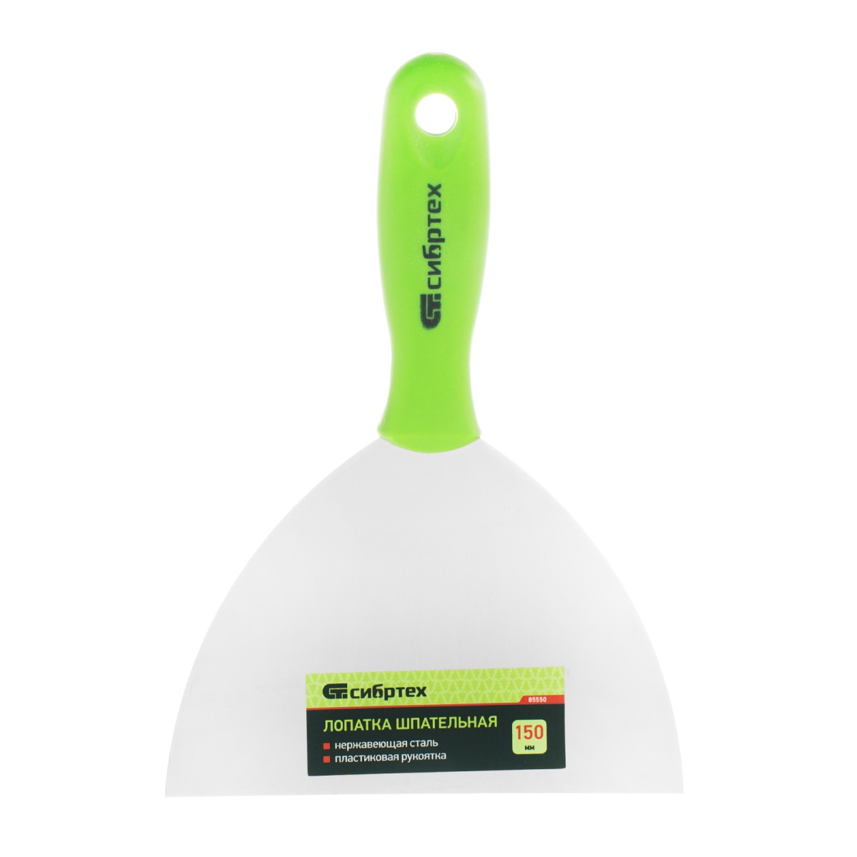 Шпательная лопатка из нержавеющей стали, 150 мм, пластмассовая ручка Сибртех