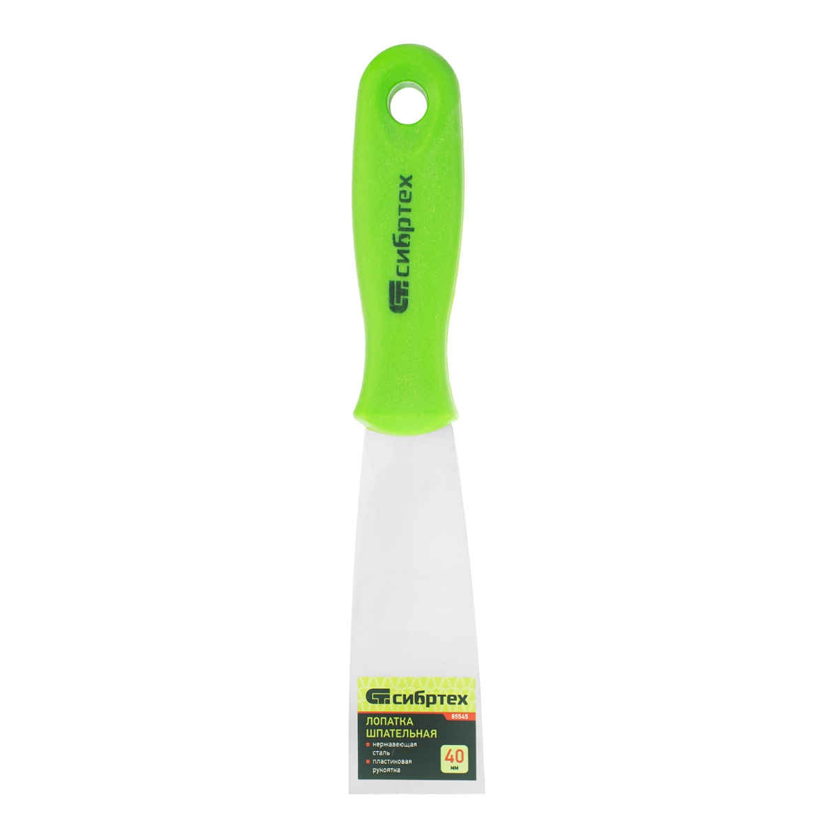 Купить Шпательная лопатка из нержавеющей стали, 40 мм, пластмассовая ручка Сибртех V7988 по лучшей цене с доставкой - интернет магазин №1 в России