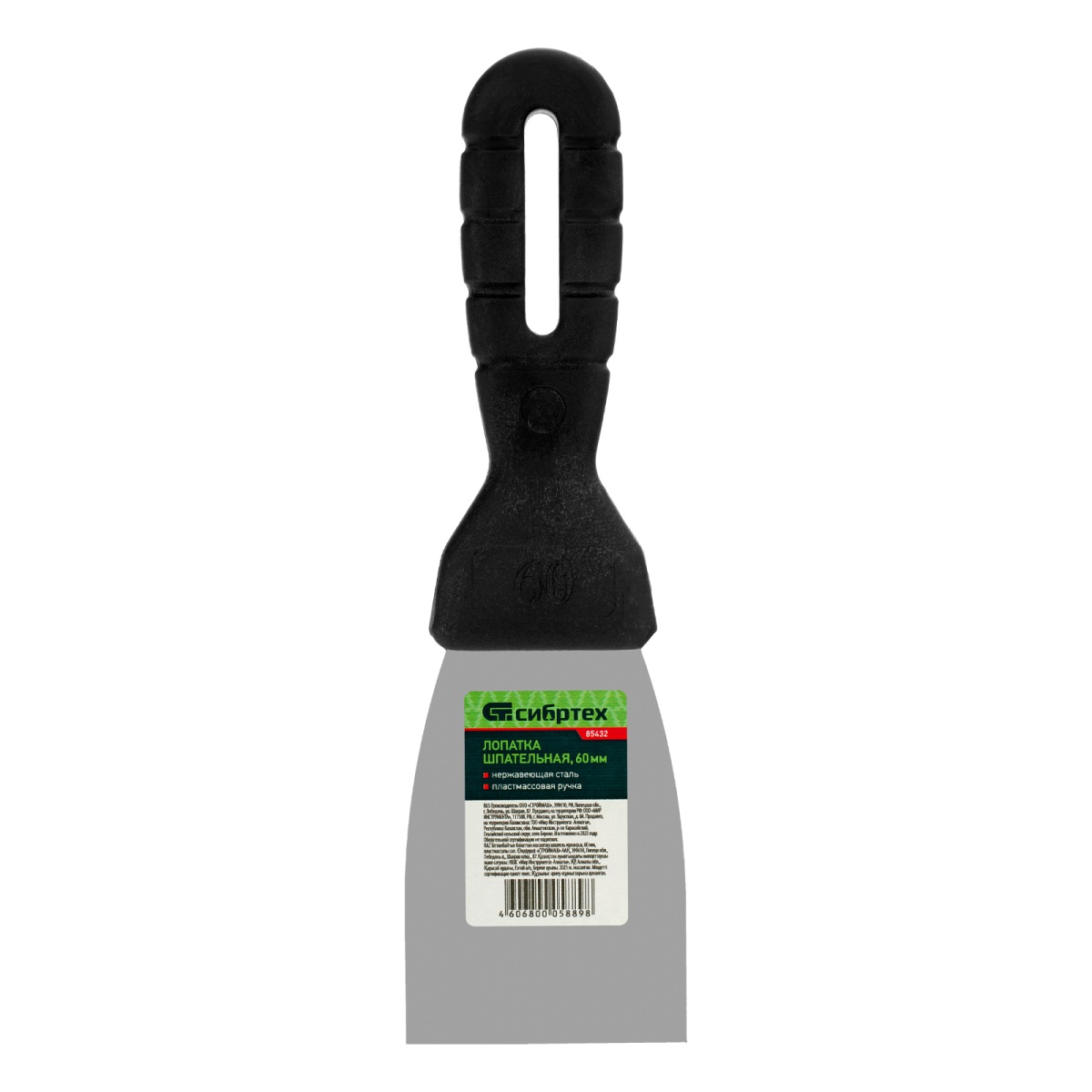 Купить Шпательная лопатка из нержавеющей стали, 60 мм, пластмассовая ручка Сибртех V7995 по лучшей цене с доставкой - интернет магазин №1 в России