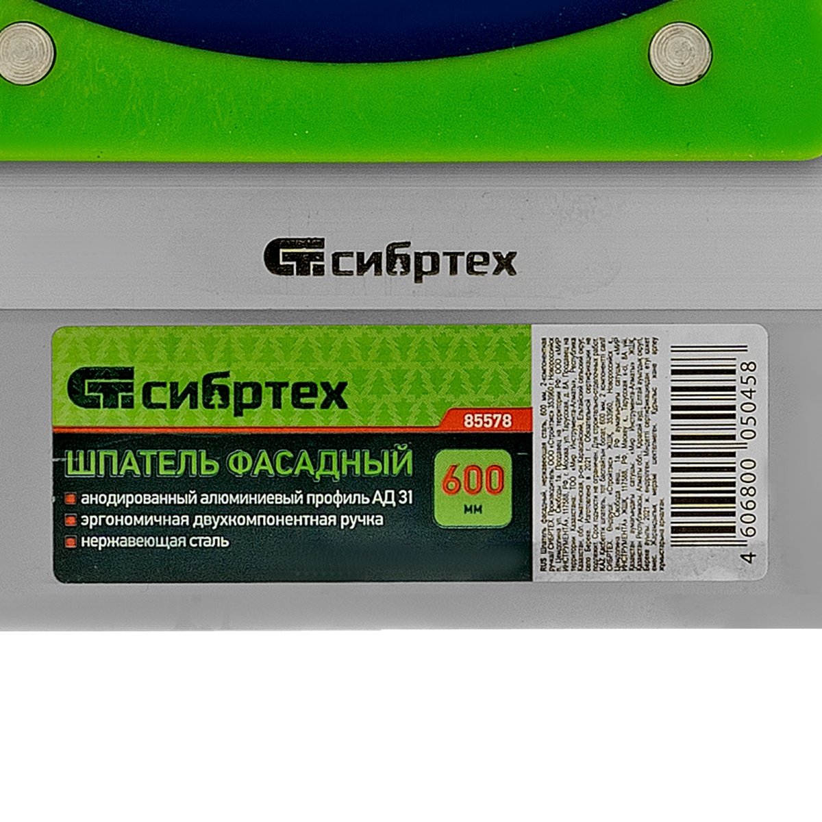 Наличие клапана для сброса давления Шпатель фасадный, нержавеющая сталь, 600 мм, двухкомпонентная ручка Сибртех