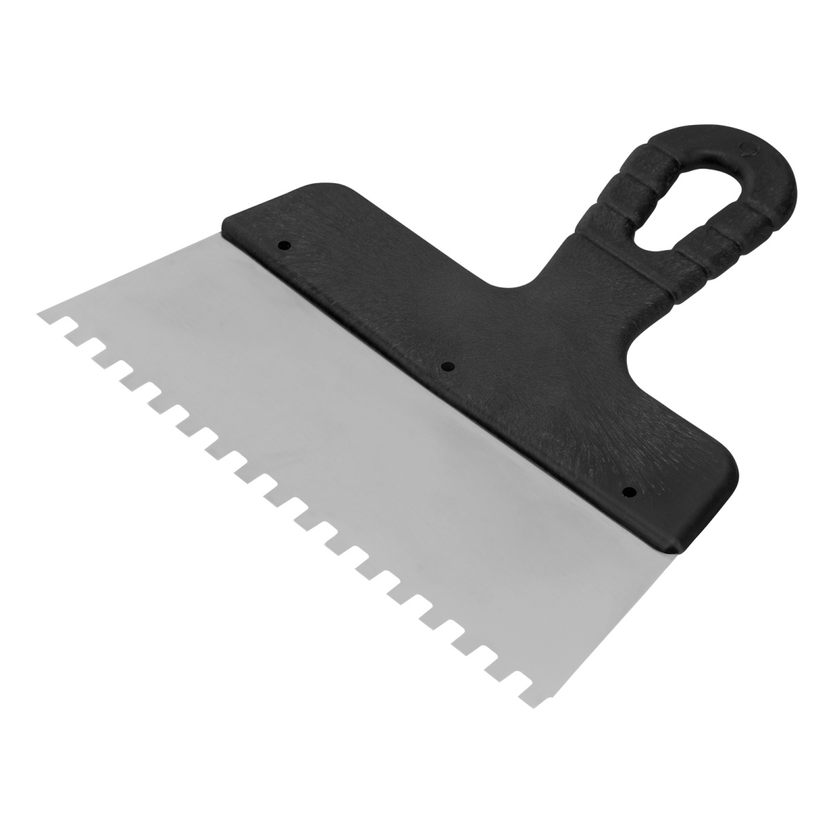 Купить Шпатель из нержавеющей стали, 200 мм, зуб 6 х 6 мм, пластмассовая ручка Сибртех V7909 по лучшей цене с доставкой - интернет магазин №1 в России