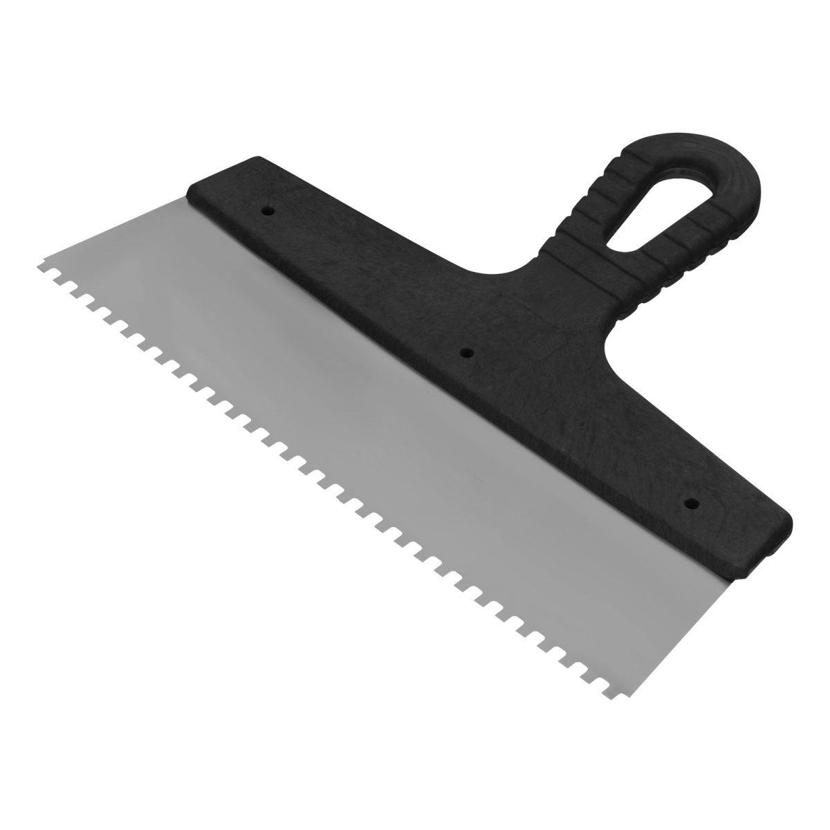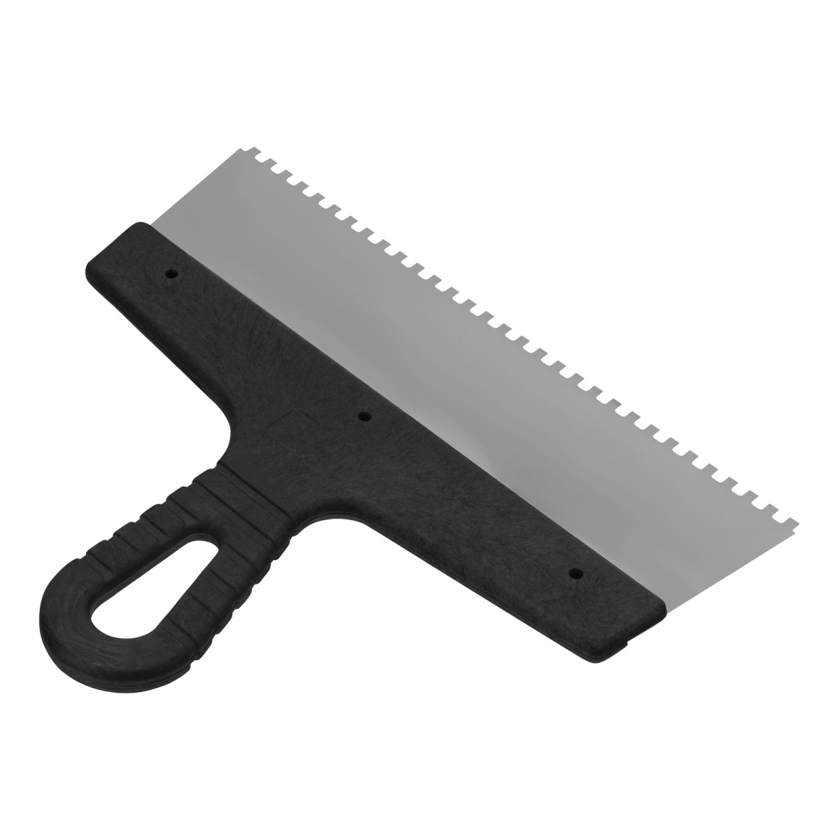 Купить Шпатель из нержавеющей стали, 250 мм, зуб 4 х 4 мм, пластмассовая ручка Сибртех V7912 по лучшей цене с доставкой - интернет магазин №1 в России