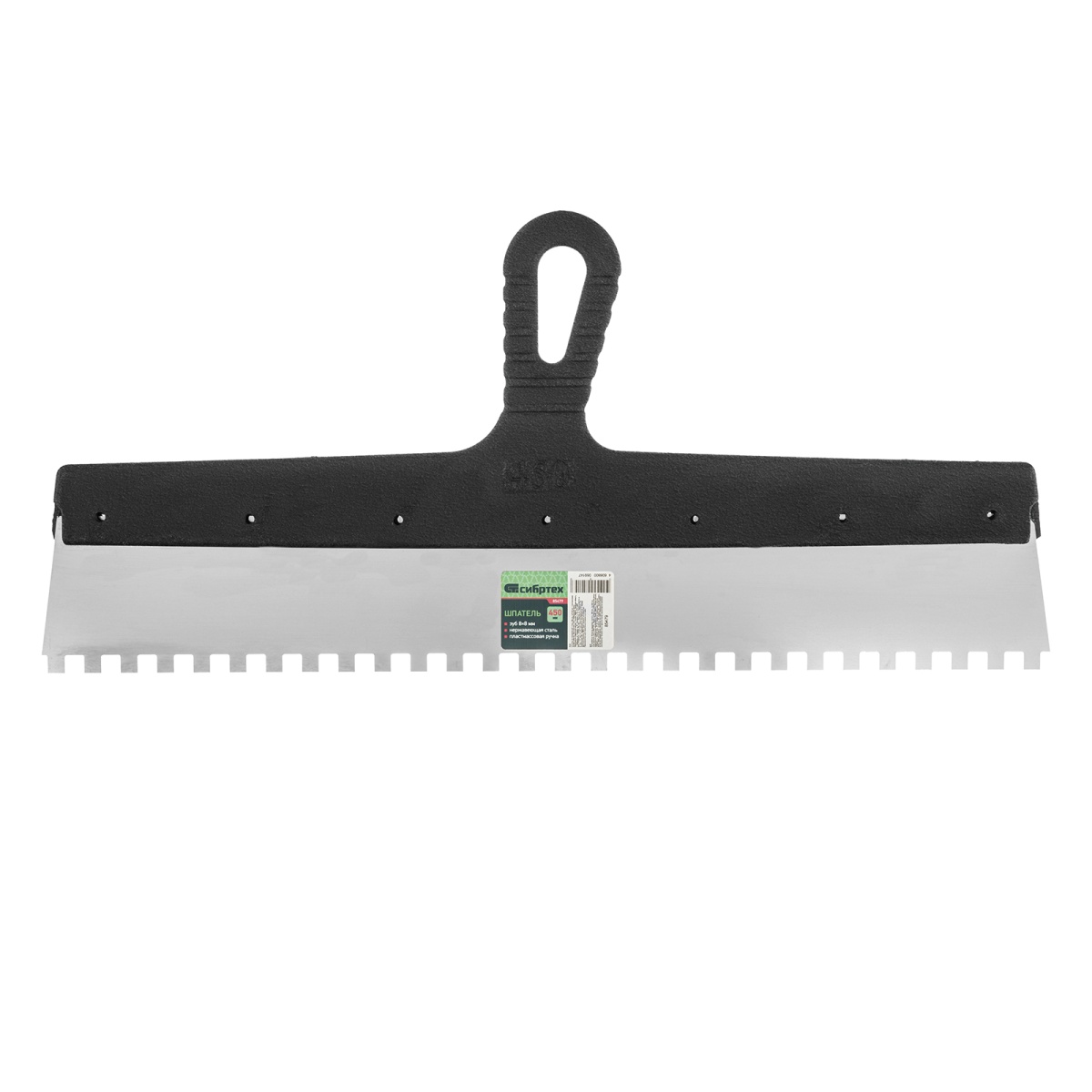 Купить Шпатель из нержавеющей стали, 450 мм, зуб 8 х 8 мм, пластмассовая ручка Сибртех V7922 по лучшей цене с доставкой - интернет магазин №1 в России