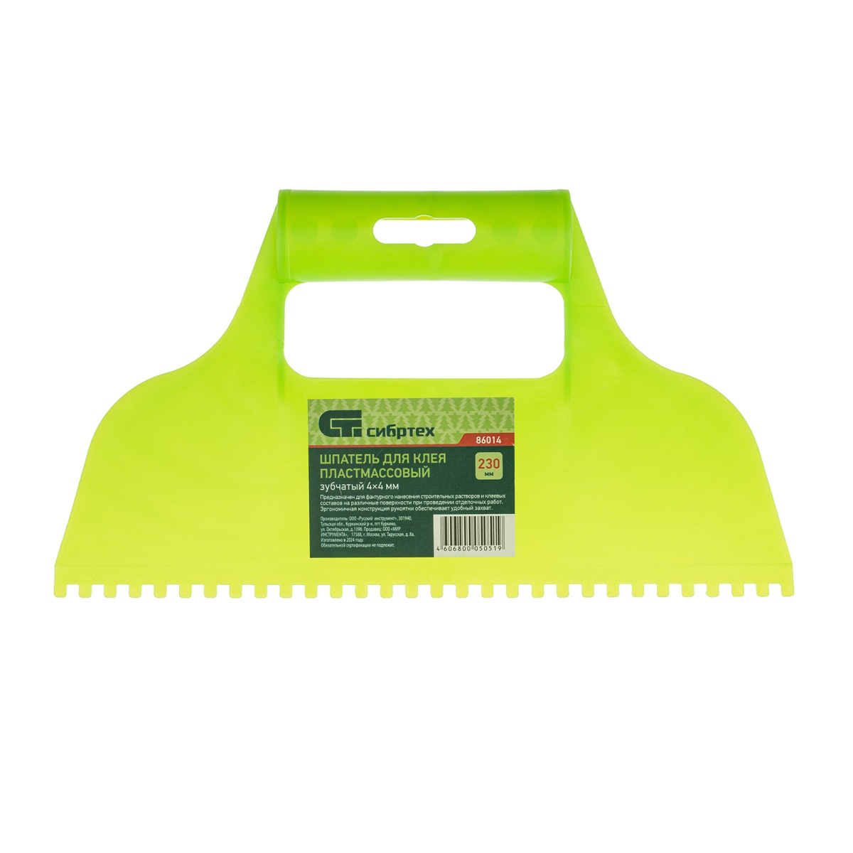 Купить Шпатель для клея, пластмассовый, зубчатый 4 х 4 мм Сибртех V7898 по лучшей цене с доставкой - интернет магазин №1 в России