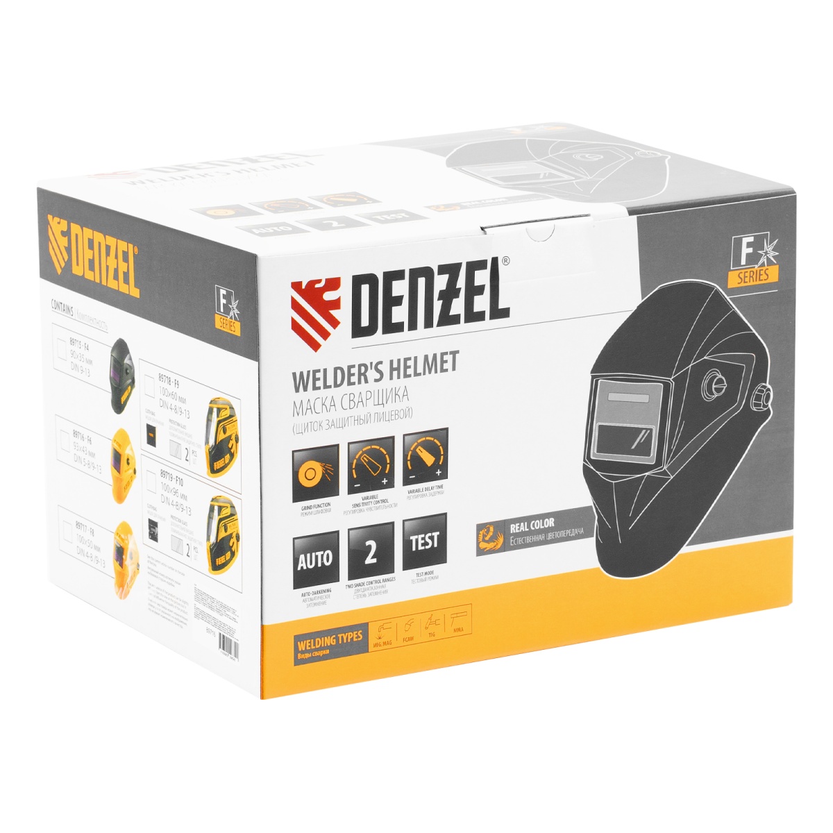 Купить Щиток защитный лицевой (маска сварщика) F6, см. окно 93х43, Real Color, DIN4/5-8/9-13// Denzel V8208 по лучшей цене с доставкой - интернет магазин №1 в России