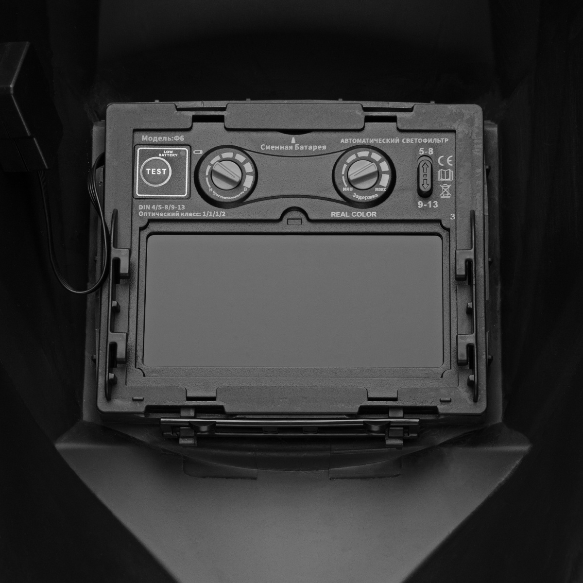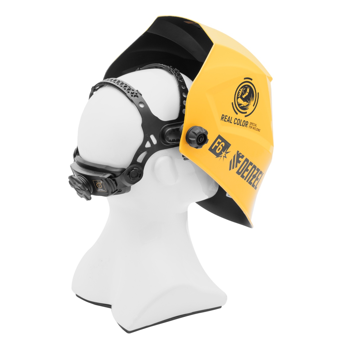 Наличие клапана для сброса давления Щиток защитный лицевой (маска сварщика) F6, см. окно 93х43, Real Color, DIN4/5-8/9-13// Denzel
