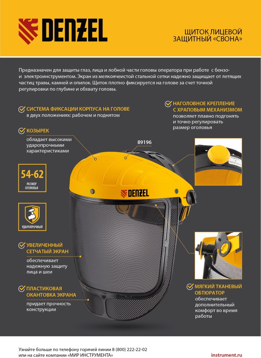 Купить Щиток защитный лицевой с сеткой "СВОНА" НС-01 "ЛЮКС", плавная регулировка храповик Denzel V8218 по лучшей цене с доставкой - интернет магазин №1 в России