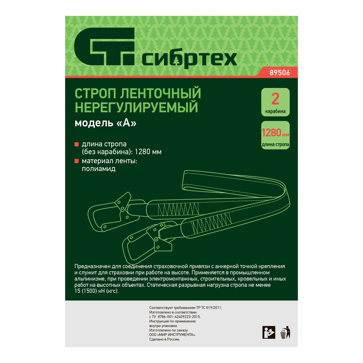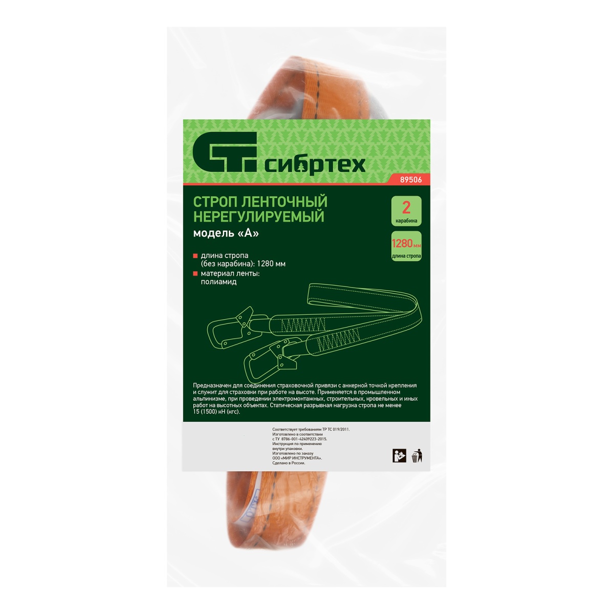 Строп нерегулируемый, ленточный, модель «А», 2 карабина Сибртех